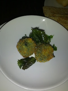 Another fairly heavy feeling amuse. Again, nicely fried, with batter that wasn't too heavy and was perfectly crisp. The fried mint leaves alongside were also nice. I didn't really care for the flavor or texture inside of the ball though, it was vaguely cheesy but I'm not sure what else was in there.