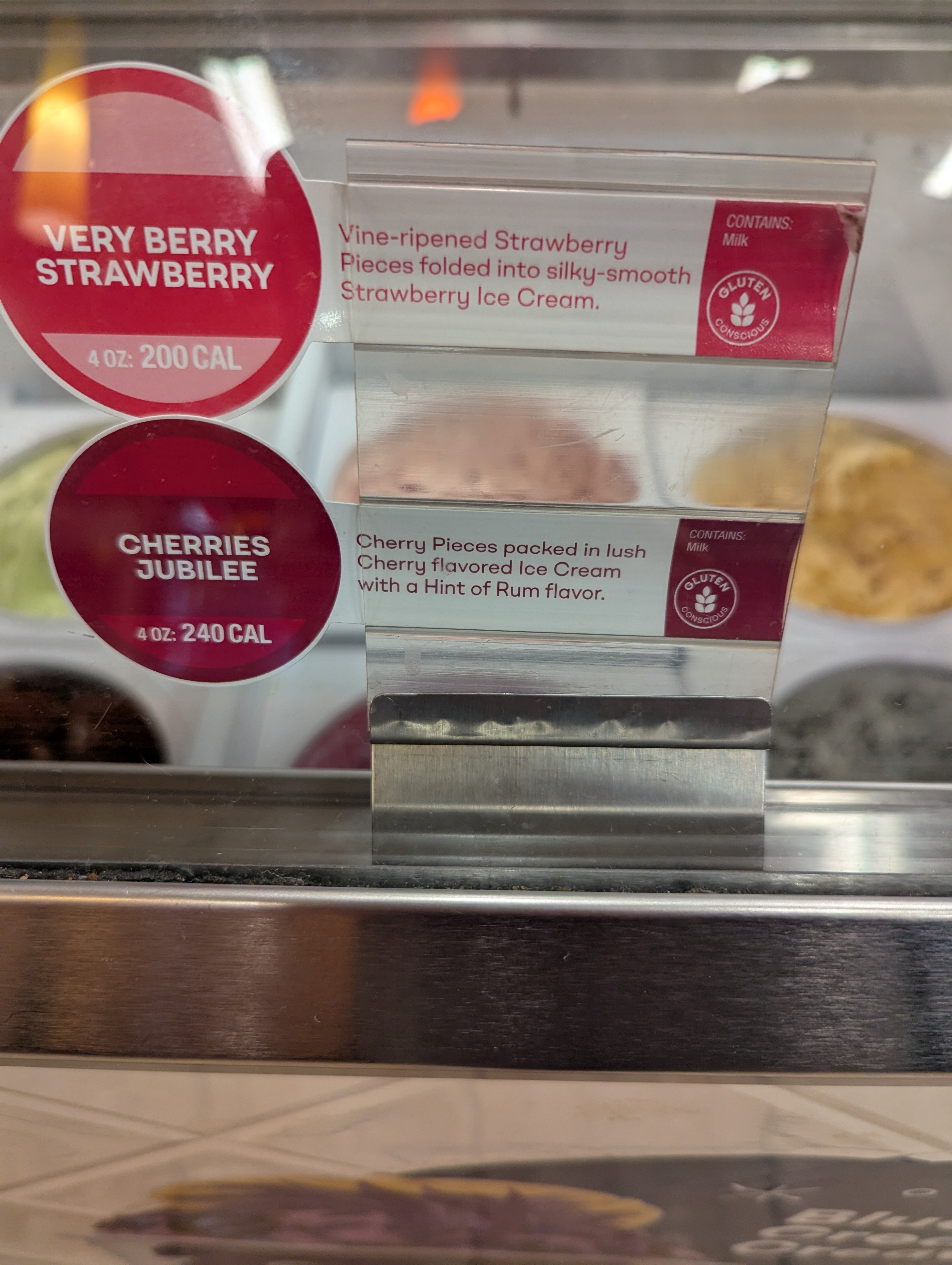 The "cake" flavored ice cream I actually thought was just plain vanilla, it wasn't until I looked up the description online that I saw it was supposed to taste like cake. Very unremarkable. The "strawberries" seemed to just be strawberry ice cream, fake tasting strawberry at that.