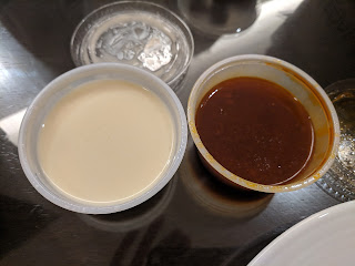 The other sauce I believe was the king pao. I didn't like it. Not with the scallops. Not with the fish sticks. Not with the fries. It was just sweet, not spicy, too strong on something (soy?). Maybe it was right for, uh, chicken, but certainly not for anything we had, and I can't imagine anything from the grilled seafood menu that would pair well with it.