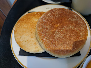 The hearty category was the least interesting to me, mostly egg dishes, but, more British than your standard scrambled eggs and toast, including East Coast Kipper, Haggis, Haddock Kedgeree, a Full English Breakfast, and more. Since I'm not an egg eater, I didn't order anything from this area, but my companion did, and whenever I dined with him, of course I tried things.
