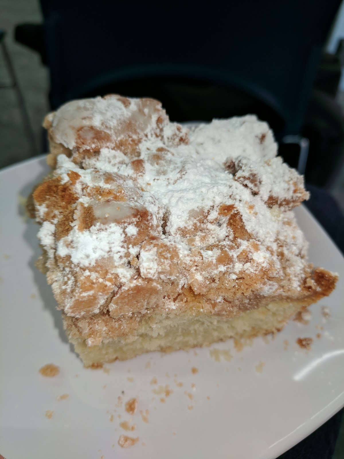 The cake was moist and flavorful, and the berries gave little pops of flavor. Not tons, but, little bits. The topping was crispy and sweet, not as interesting as the big chunks in the New York style, but, still good.