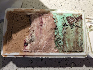 This was a new flavor for me, and one that clearly fell into the "I can't tell these apart" category. It was a flavor full of mix-ins, and a bit of crunch, and a bit of sweetness, but there was no obvious almonds nor caramel. I liked it, it had some chocolate swirls too, basically like an ice cream sundae all mixed up, but, it didn't really allow any particular element to shine. Still, quite enjoyable, my favorite of the chocolate lineup in this pan. ****. I think my third pick of the overall chocolate flavors.