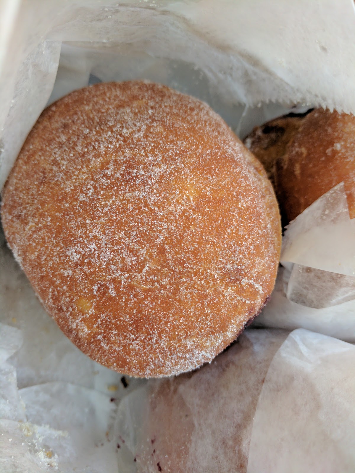 On the basic side, I also tried the "Sugar Daddy", a sugar coated raised donut. It was perfectly coated in sugar crystals, and tasty, but, sugar coated donuts always make me want them to be jelly filled (more on that soon). ***+.